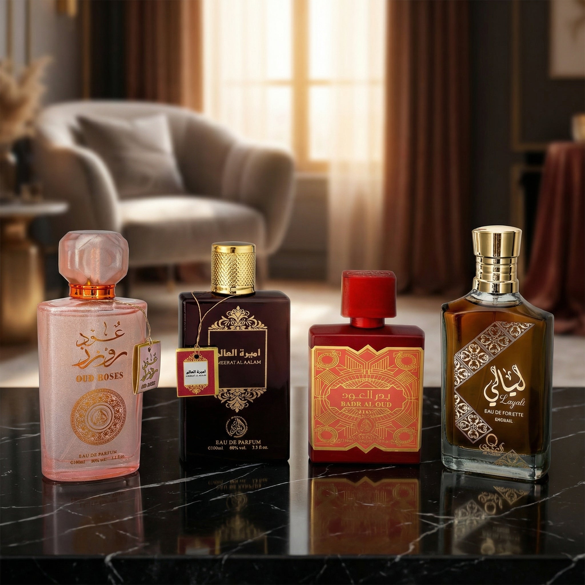 Set 4 Parfumuri Orientale Bărbați – Sheikh Zayed Musk + Ameer Al Oud Abiyad + Mohoub + Ameer Al Oud Original (100 ml x 4)